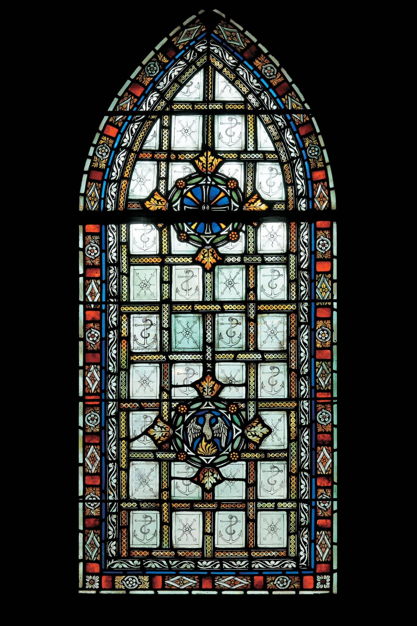 Motifs ornementaux avec le chrisme et un pélican dans des médaillons
