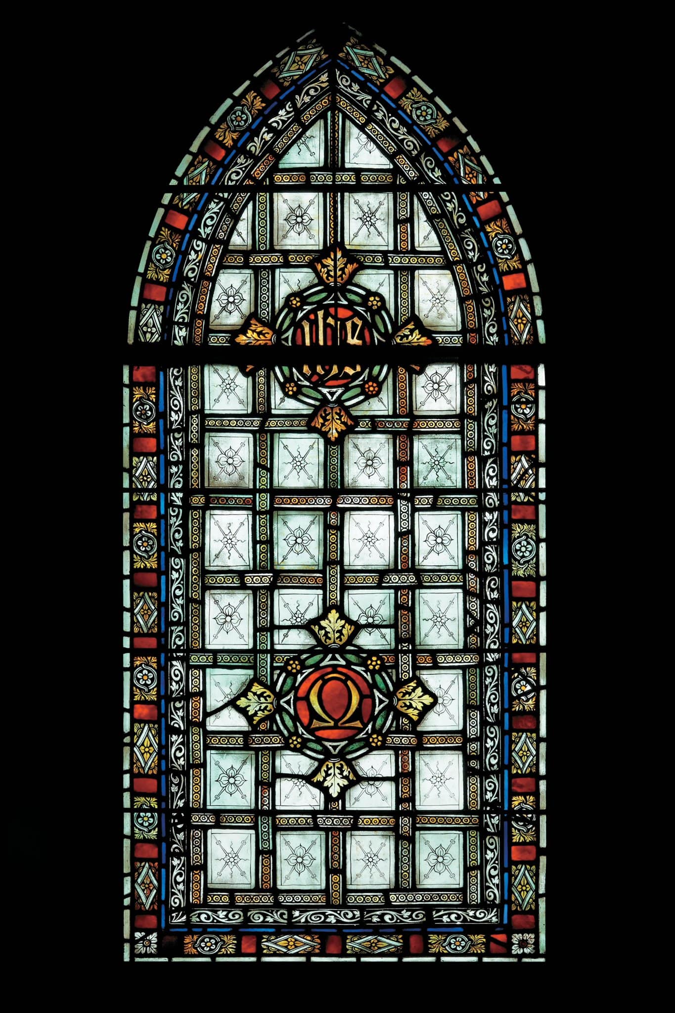 Motifs ornementaux avec les initiales du Christ et l’oméga dans des médaillons
