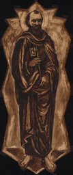 11H(PETER)9 · l'apôtre Pierre, premier évêque de Rome; attributs possibles : livre, coq, croix (à l'envers), crosse (triple), poisson, clef, rouleau, navire, tiare - portrait du saint
