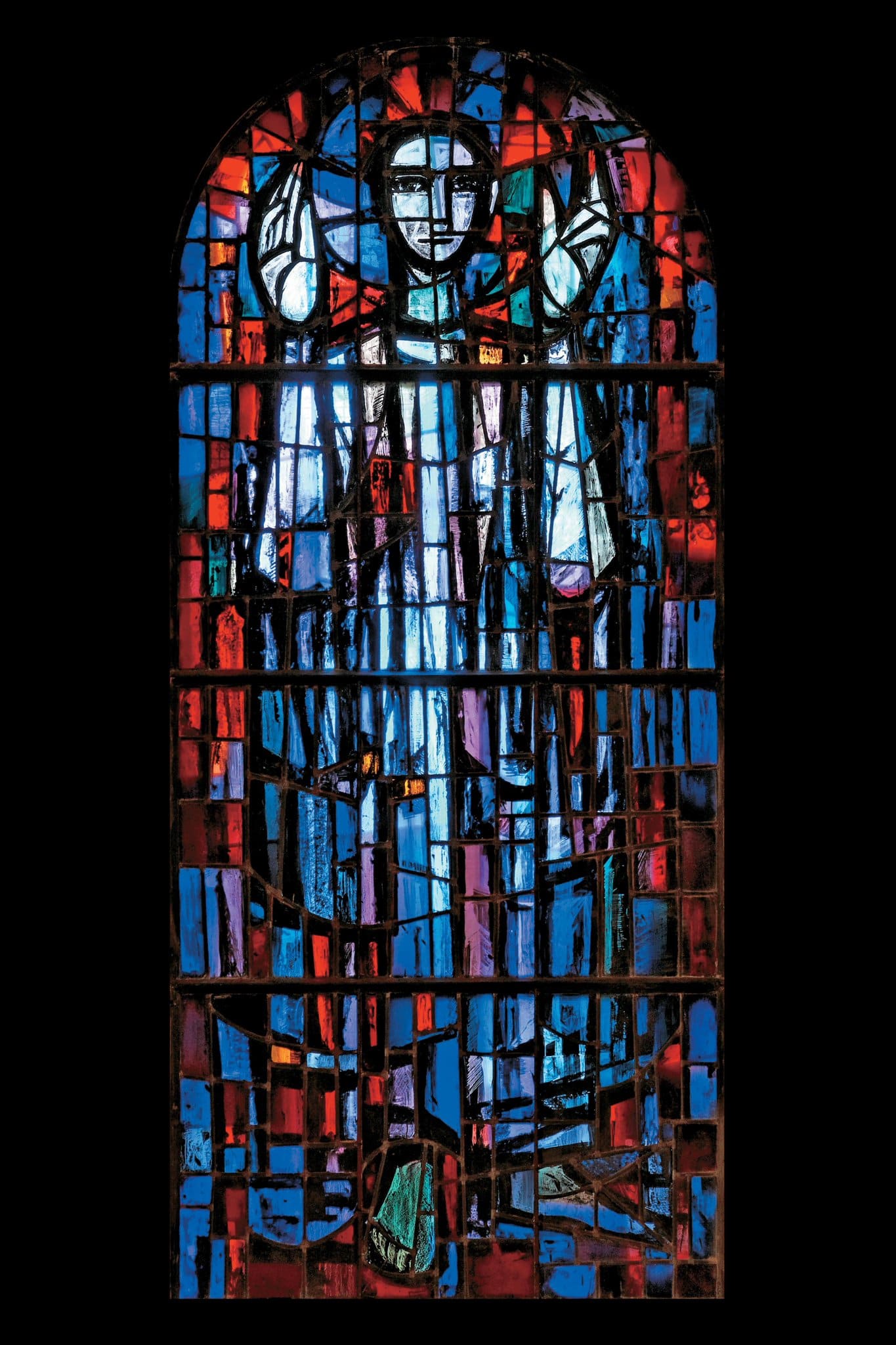 La superposition des deux verrières colorées (séparées de 4 cm) crée une gamme unique de bleus et de rouges.