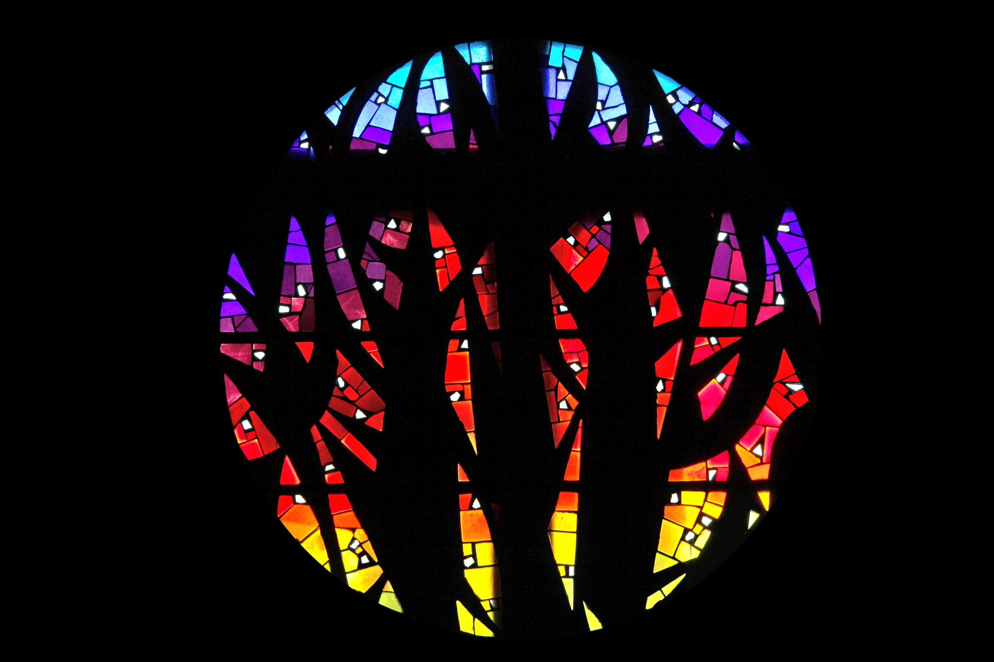 Un buisson ardent s’enflamme dans un dégradé de teintes jaunes, oranges, rouges, violettes pour terminer dans un ciel bleu.