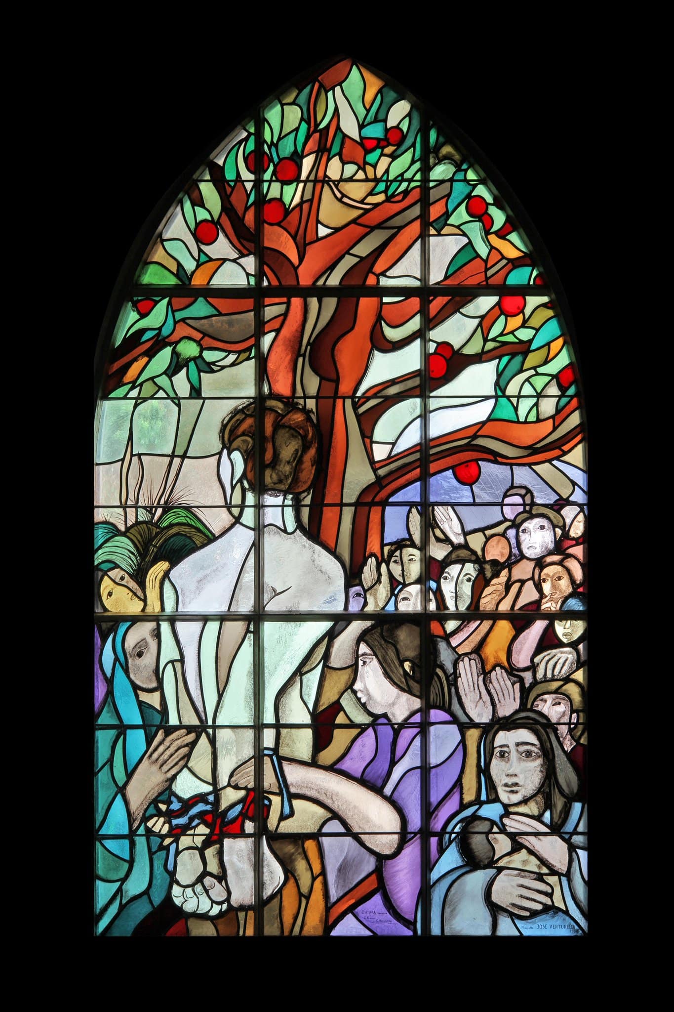 Maquette créée en 1988 et vitrail réalisé en 1991 après le décès de l’artiste grâce aux conseils de Yolande Agustoni.