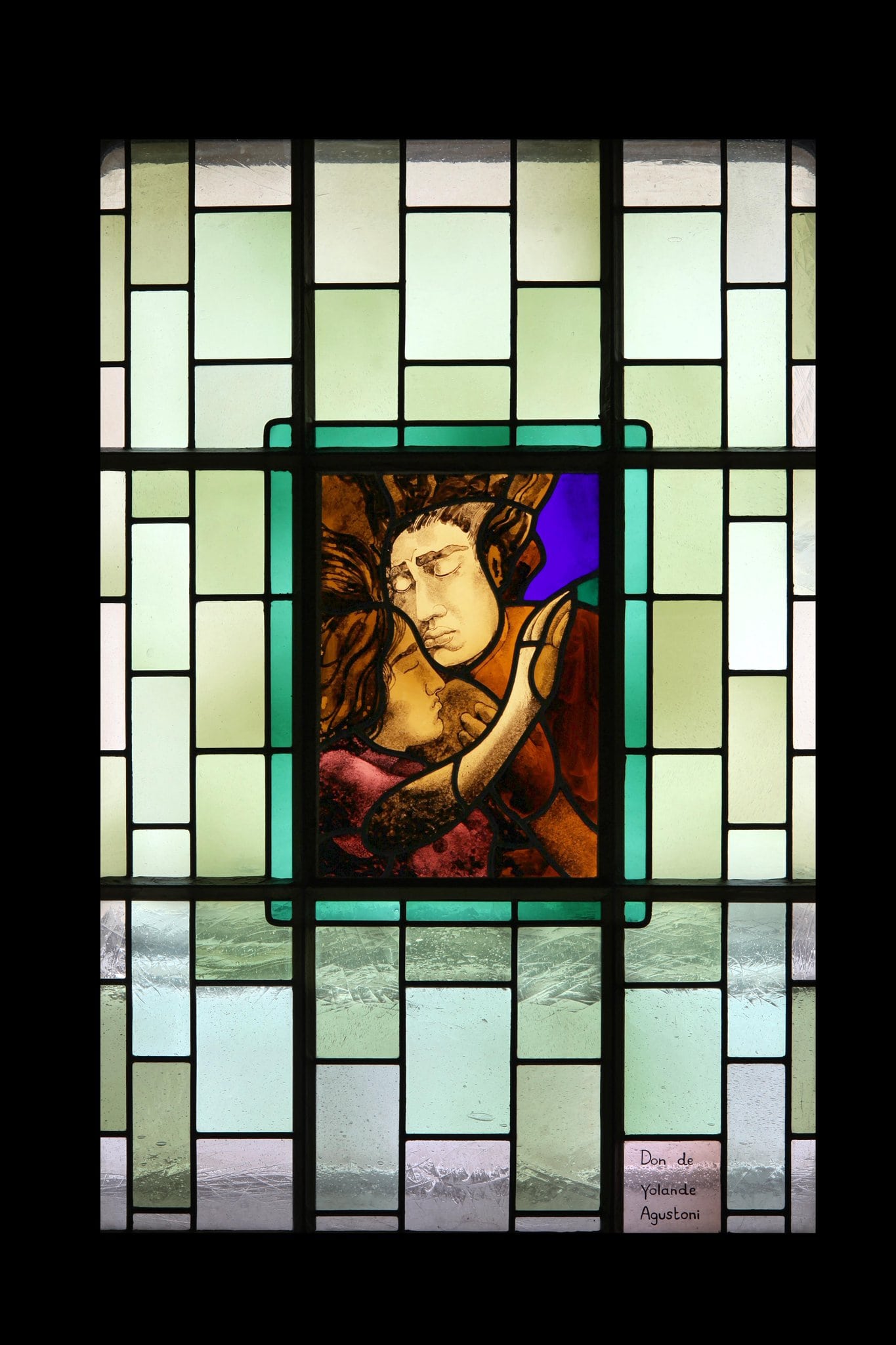 Vitrail créé sans maquette dans l’atelier Chiara en 1986 et posé en juin 1994.