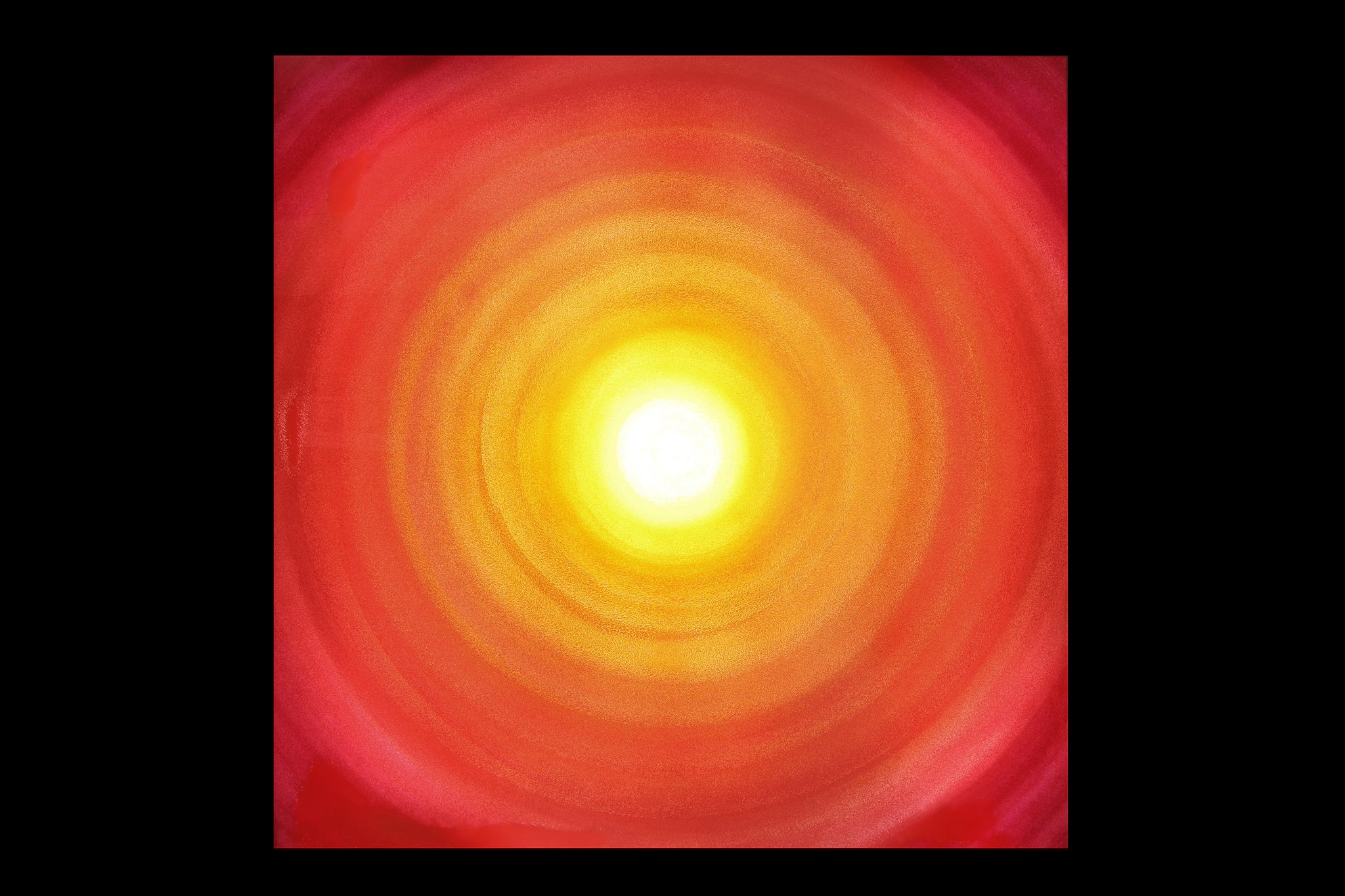 Tableau lumineux inspiré de l'arc-en-ciel. Grand cercle rouge, orange, jaune et blanc (de l'extérieur au centre).