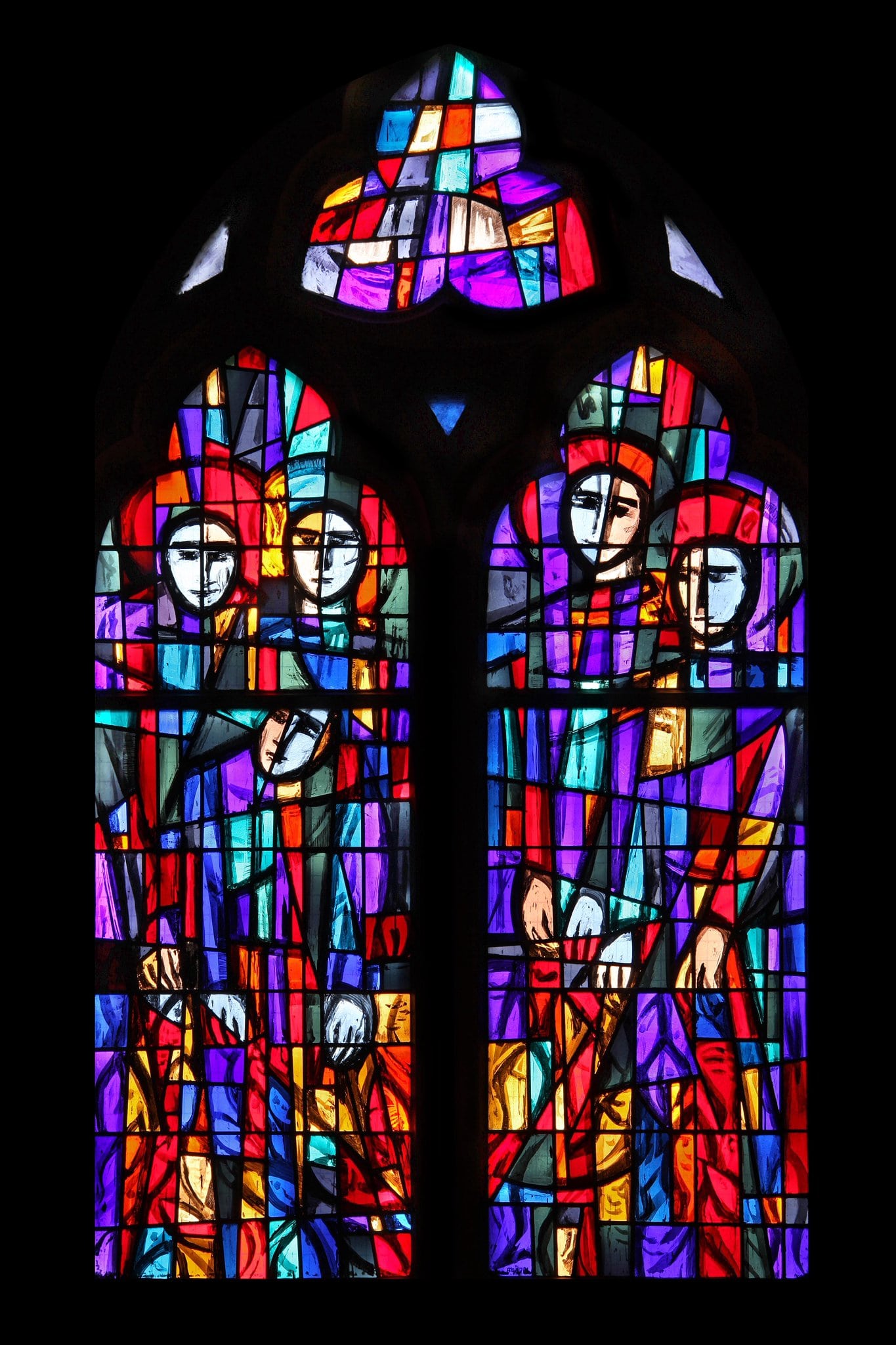 Simon aidé d’un autre apôtre sort son filet rempli de poissons sous les yeux de Jésus, Jacques et Jean.