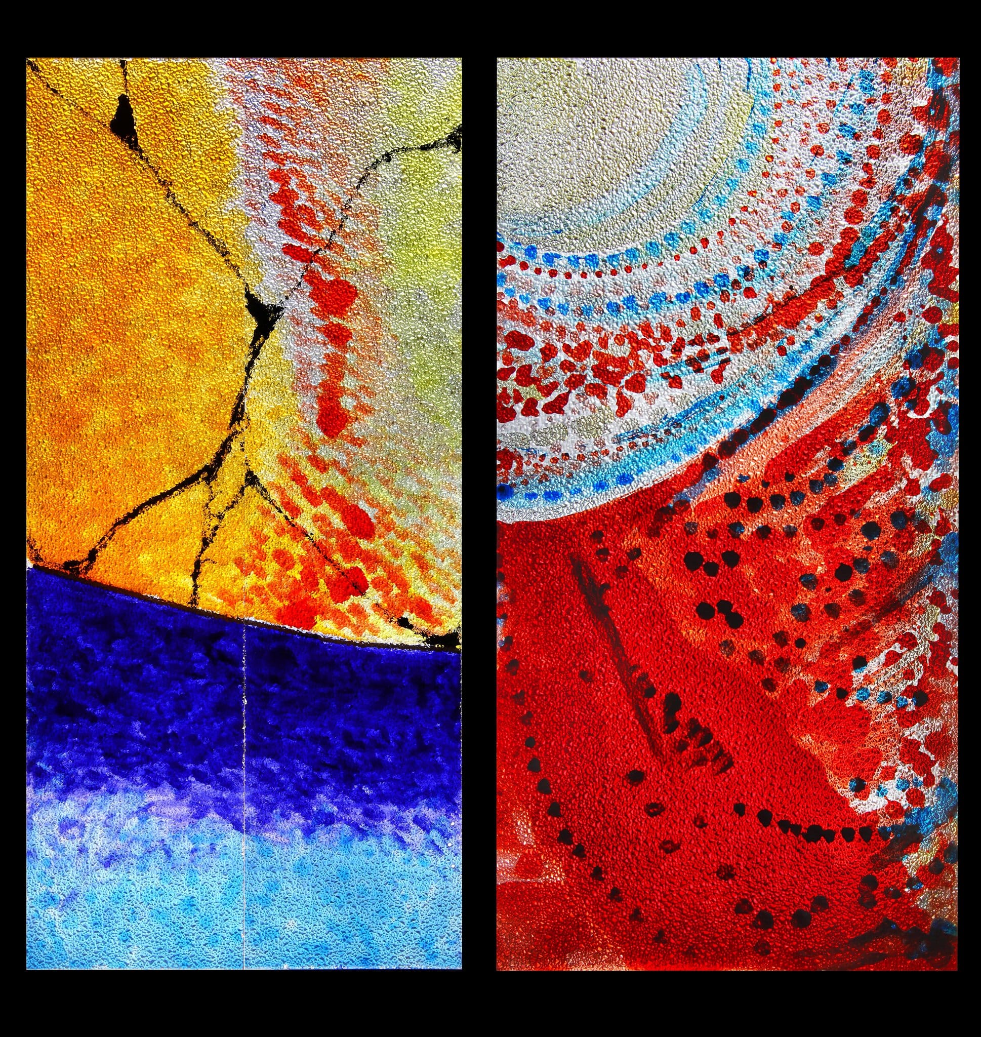 Peinture acrylique, Plexiglas posé sur verre, encadrement métallique sur deux côtés