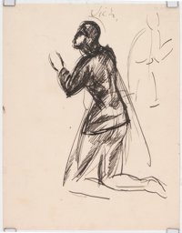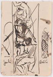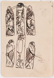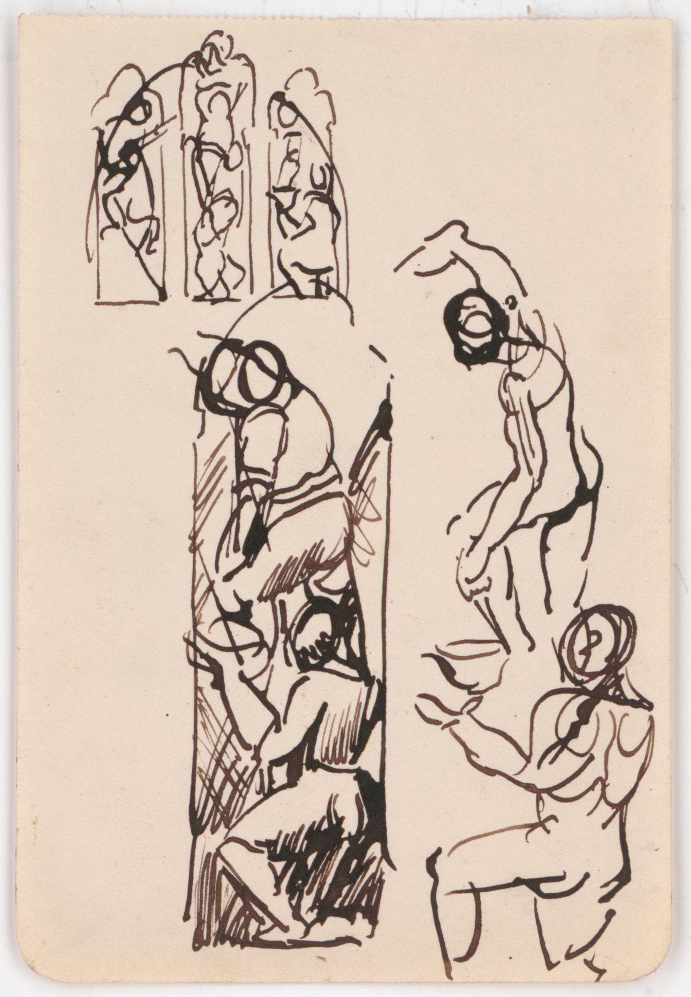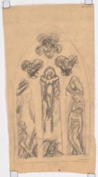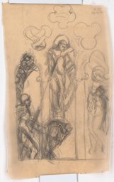 MP_02.77: Esquisse du vitrail de la Crucifixion et des personnages de la lancette de droite