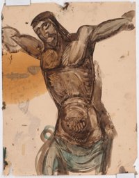 Esquisse du vitrail de la Crucifixion et des personnages de la lancette de droite