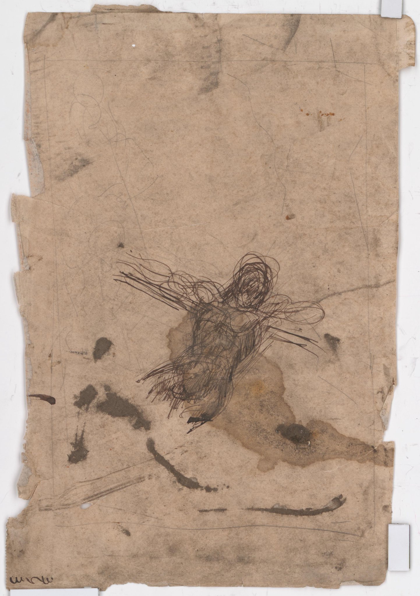 Usure, taches, déchirures dont une grande au centre, grande tache brune au verso