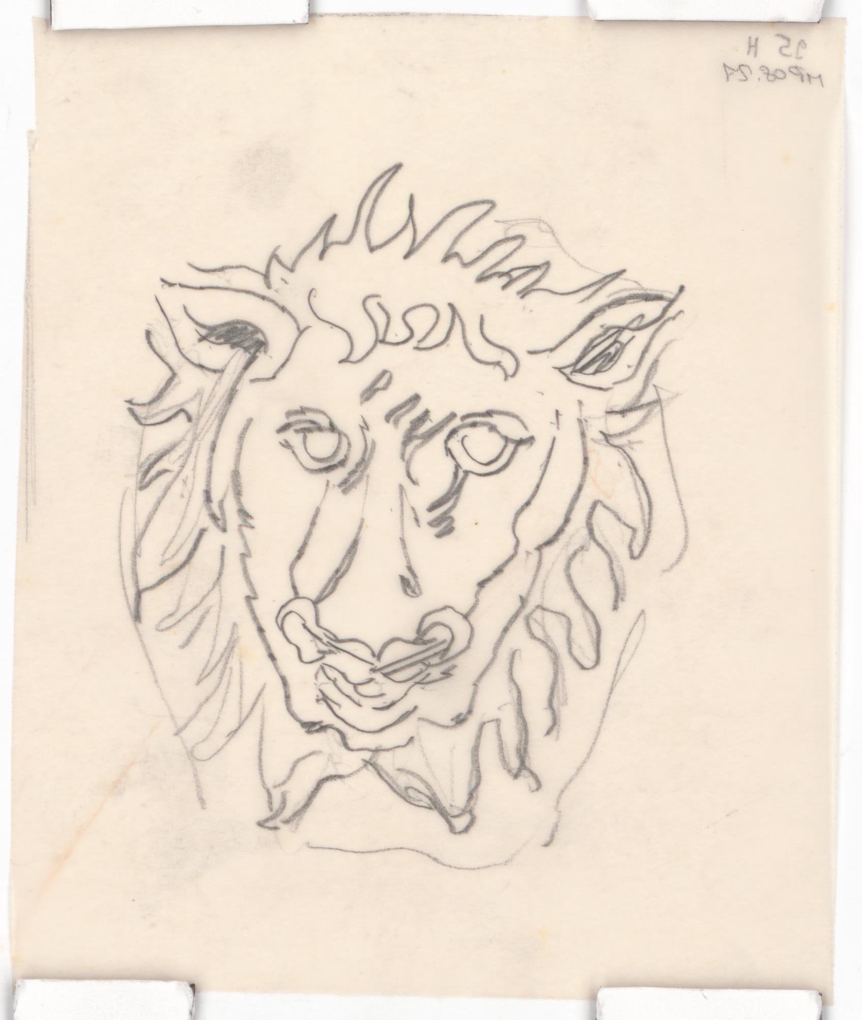 Esquisse pour des vitraux sur le thème de la "carte du ciel": la tête du Lion de face.