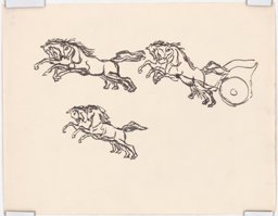Esquisse pour des vitraux sur le thème de la "carte du ciel" : le Dieu Hermès tenant le caducée, sur un char tiré par deux oiseaux. En haut à droite : symbole de la planète Mercure.