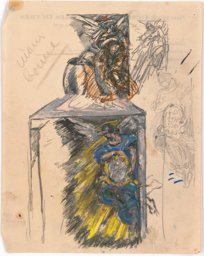 Le Christ enfant debout, colombe, personnages apportant des présents, femme de profil, Christ couché dans la crèche et deux croquis du vitrail