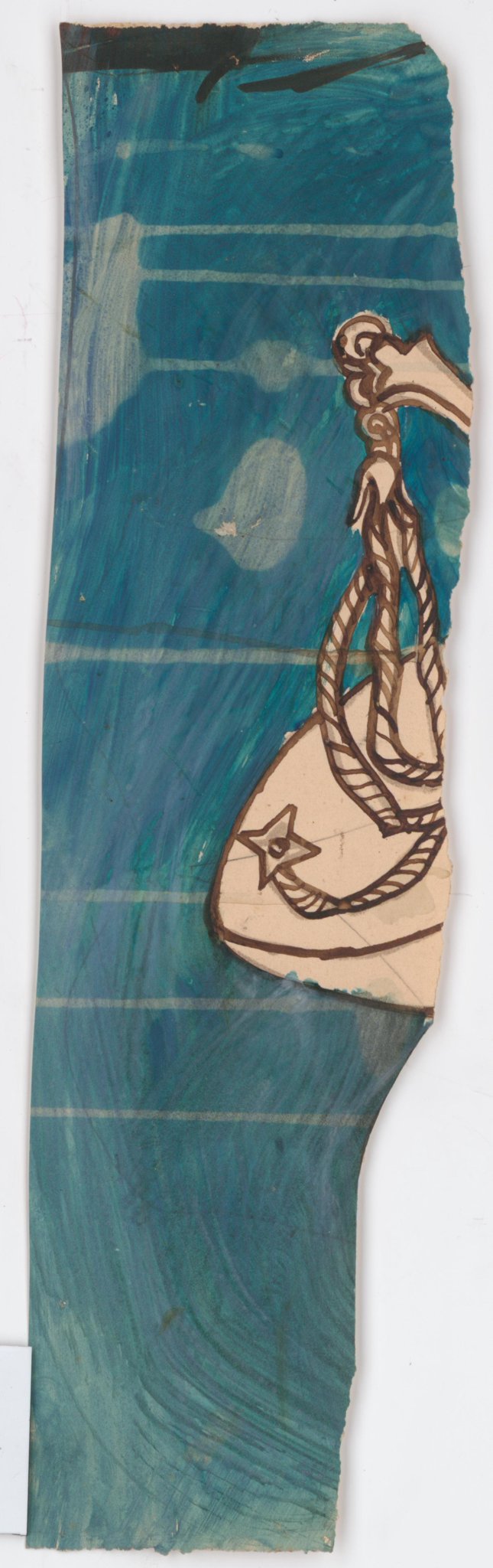 Esquisse fragmentaire en couleur pour des vitraux sur le thème de la "carte du ciel" : la Balance, sur fond bleu. Une grande partie de la composition est manquante.