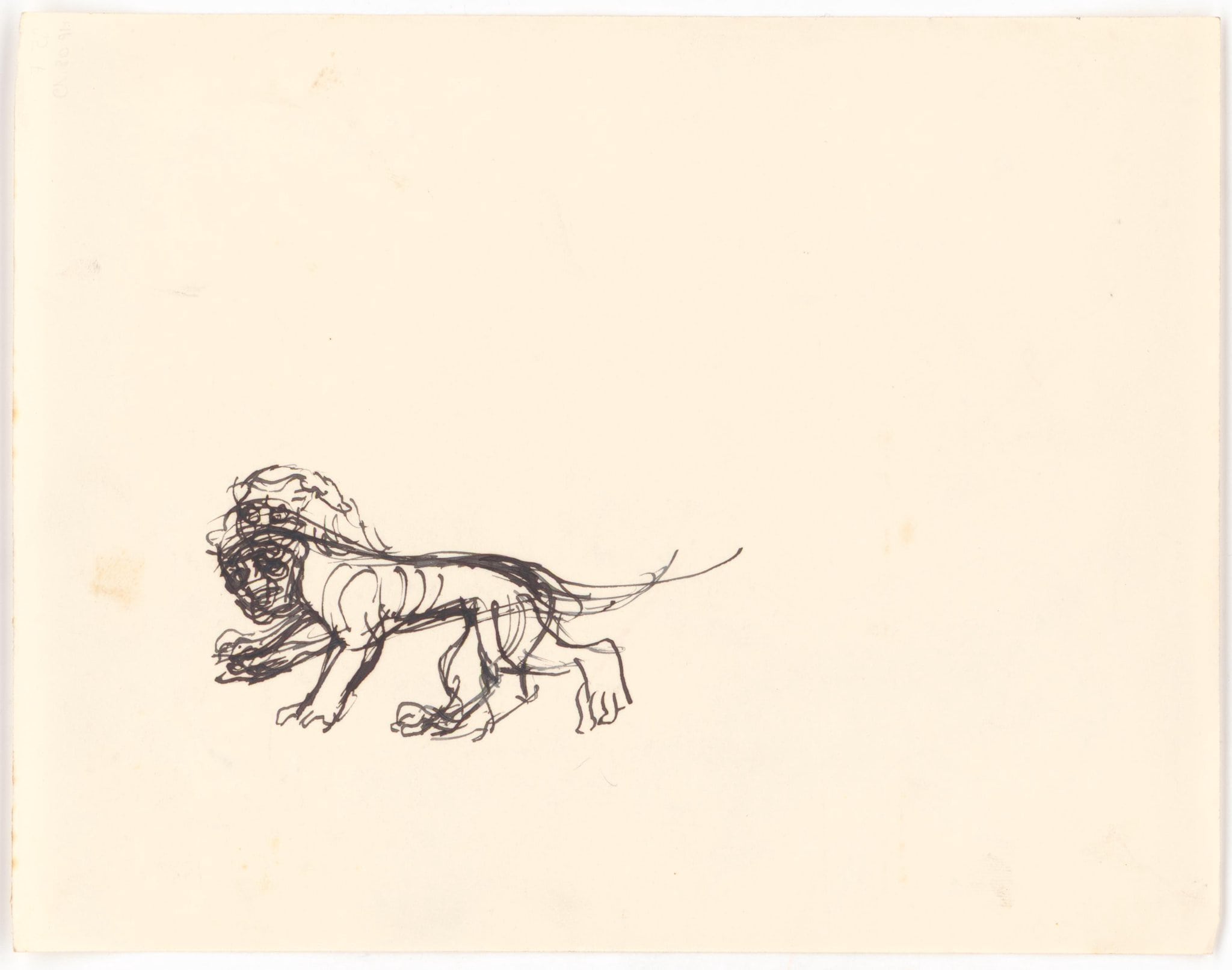 Esquisse pour des vitraux sur le thème de la "carte du ciel": le Lion représenté de profil, la tête basse.