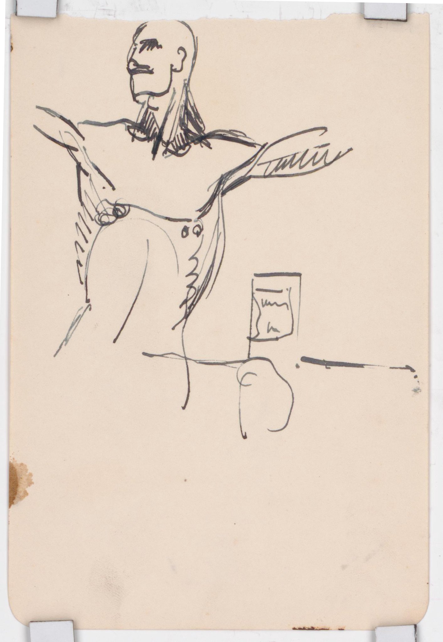 Esquisse du corps du Christ bras écartés (sans la croix), et un petit croquis de la croix en bas à droite (?).