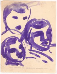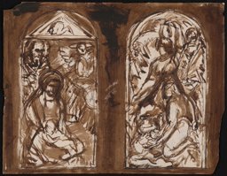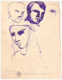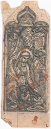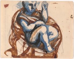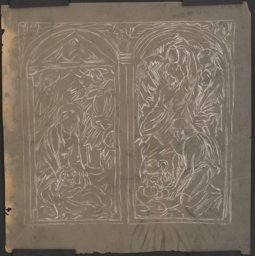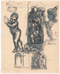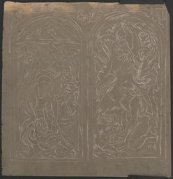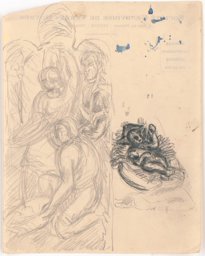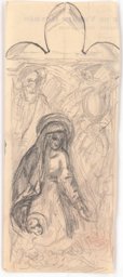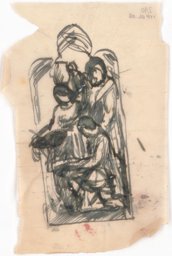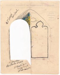 Ange apparaissant dans un flot de lumière, portant un médaillon. Il est représenté quatre fois, plus ou moins esquissé. Celui d'en bas à gauche est représenté avec son emplacement dans la baie.