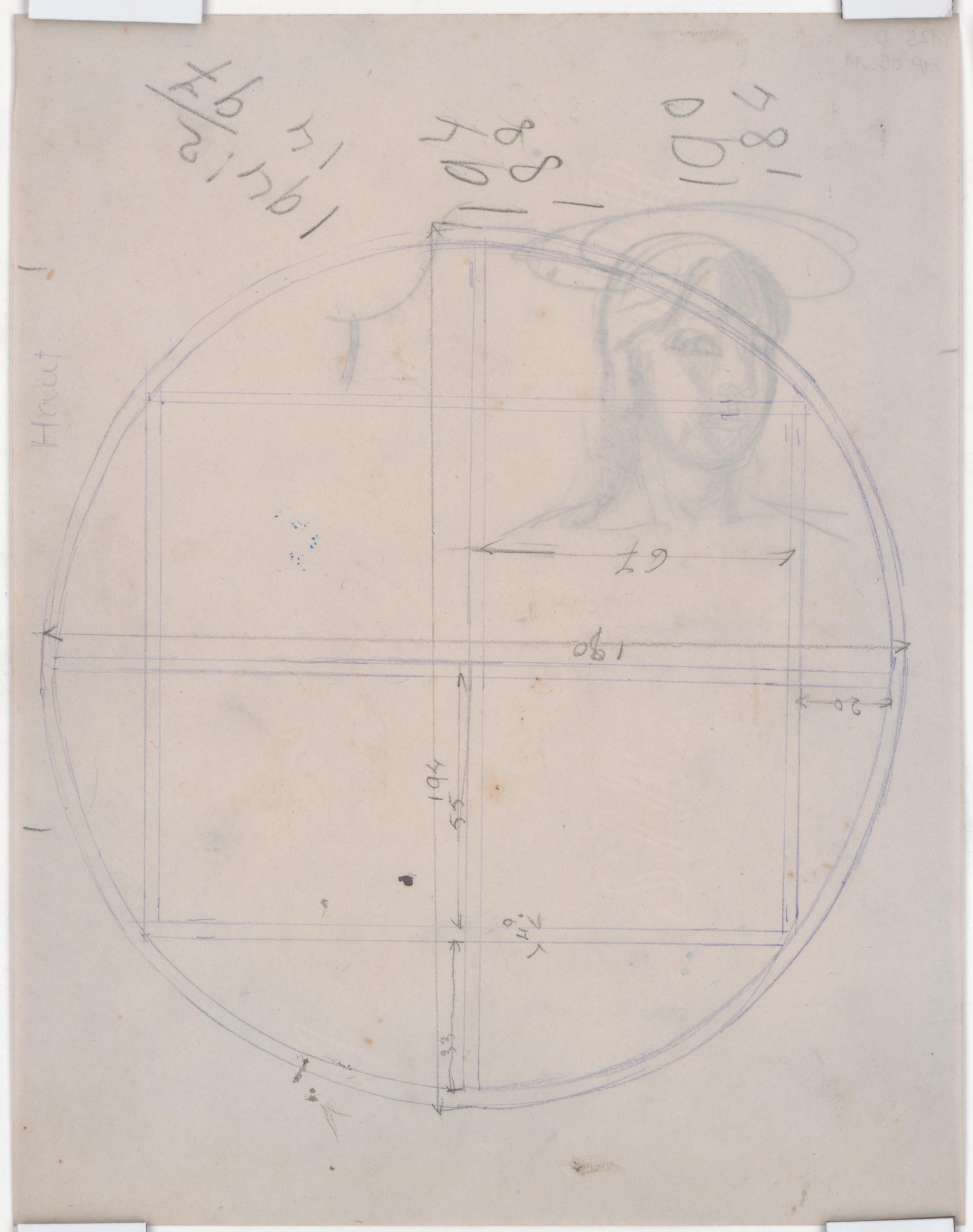Au verso : détail d'un visage de femme auréolée (Marie ?).