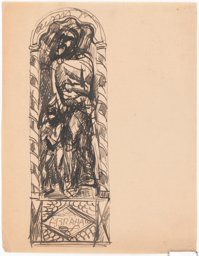 Ce travail préparatoire a été réalisé en 1924 par l’artiste Marcel Poncet dans le cadre de la commande de trois vitraux pour la tribune des orgues de l'église Saint-Paul de Cologny (GE), représentant Melchisedech (GE_08.21), Moïse (GE_08.22) et David (GE_08.23).