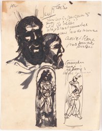 Ce travail préparatoire a été réalisé en 1924 par l’artiste Marcel Poncet dans le cadre de la commande de trois vitraux pour la tribune des orgues de l'église Saint-Paul de Cologny (GE), représentant Melchisedech (GE_08.21), Moïse (GE_08.22) et David (GE_08.23).