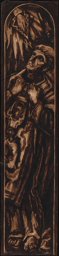 Marcel Poncet reçoit en 1931 la commande d'une mosaïque pour l'église Sankt-Josef de Gstaad, par l'intermédiaire de la collectionneuse Grumbach-Vogt, qui lui a été présentée lors de son séjour à Paris par l'artiste Antoine Bourdelle. L'oeuvre de Poncet ayant fait grande impression, il obtient ensuite la commande de huit grands vitraux pour la nef et de quatre petits pour le choeur. Les vitraux de la nef, représentant des saintes à gauche et des saints à droite, dans des tons très sombres de grisaille rehaussée de touches or et argent, frappent par leur contraste avec la production antérieure de Poncet. Ce dernier est néanmoins contraint de les éclaircir, sous peine d'en voir certains ôtés (NOVERRAZ, 2014, pp. 54-58 ; REYMOND, 1992, pp. 70, 106, 169 ; Dossier "Vitraux de Gstaad, correspondance, 1932", boîte "VITRAUX II, 1932-1947", archives Poncet, Vitrocentre Romont).