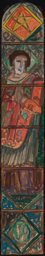 Saint Etienne en pied, portant une riche chasuble, le visage tourné vers une lumière au-dessus de lui.