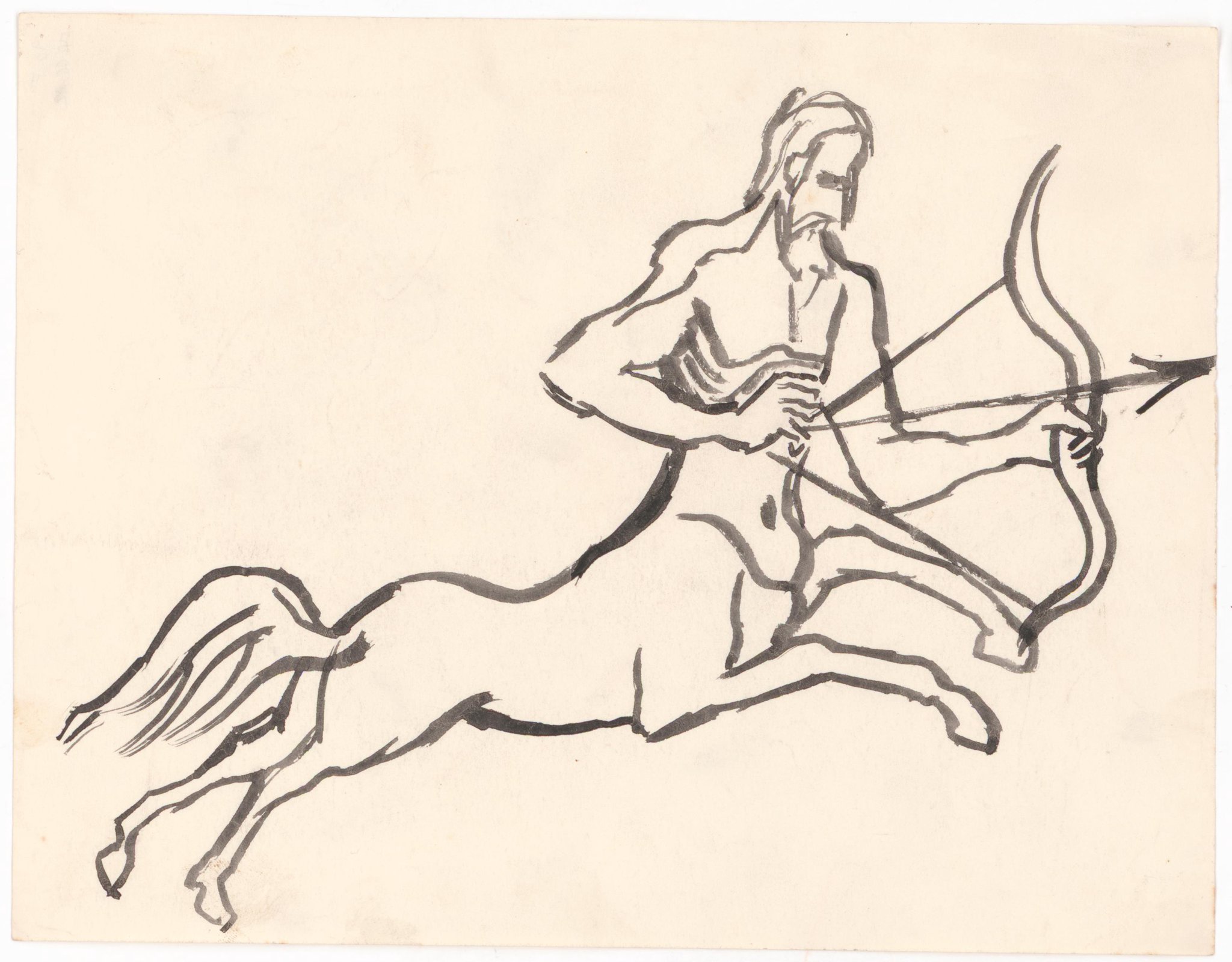 Esquisse pour des vitraux sur le thème de la "carte du ciel": le Sagittaire de profil, tendant son arc.