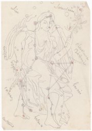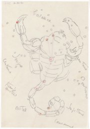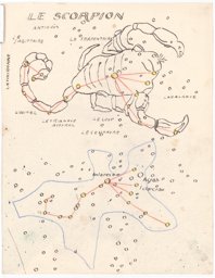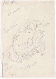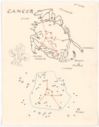 Étude pour des vitraux sur le thème de la "carte du ciel": la constellation du Cancer et ses principales étoiles.