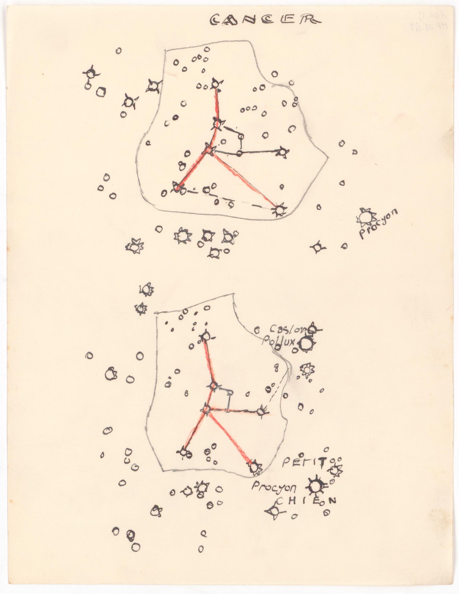 [De gauche à droite et de haut en bas :] CANCER / Procyon / Castor / Pollux / PETIT / Procyon / CHIEN