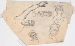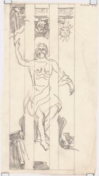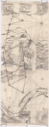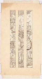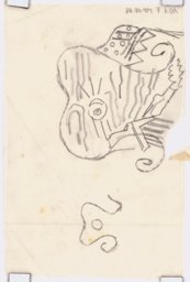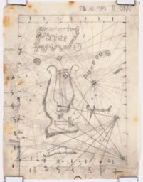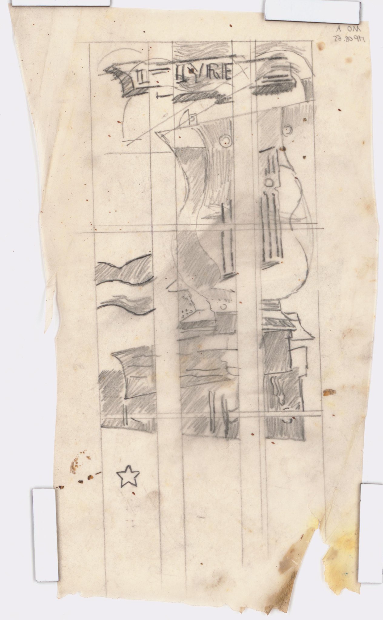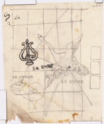 Esquisse pour des vitraux sur le thème de la "carte du ciel" : la lyre au sommet d'un amas rocheux, pour le vitrail de la constellation de la Lyre.