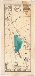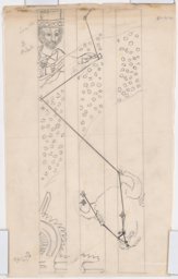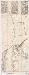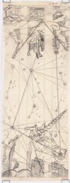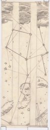 Ce travail préparatoire peut probablement être rattaché à une commande de l'architecte W. Henauer à Marcel Poncet pour les vitraux de sa nouvelle église de Wollishofen en 1937 (Reymond, 1992, p. 170), qui ne seront pas réalisés pour des raisons inconnues. Deux projets représentant 17 fenêtres sur le thème des cartes du ciel avec des inscriptions en allemand et la date de 1937 (MP 08.58 et MP 08.176), ont pu être attribués à cette commande. C'est sur la base de ces travaux très détaillés que le corpus des oeuvres préparatoires pouvant y être rattachées a pu être établi.