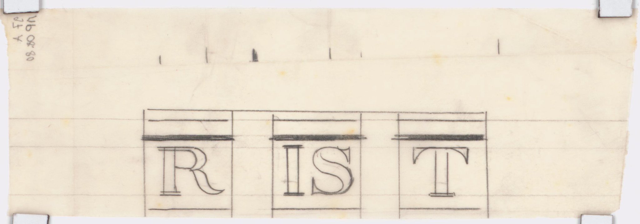 Étude pour des vitraux sur le thème de la "carte du ciel" : répartitions des lettres de l'inscription "CHRISTUS" pour les panneaux centraux avec le Christ.