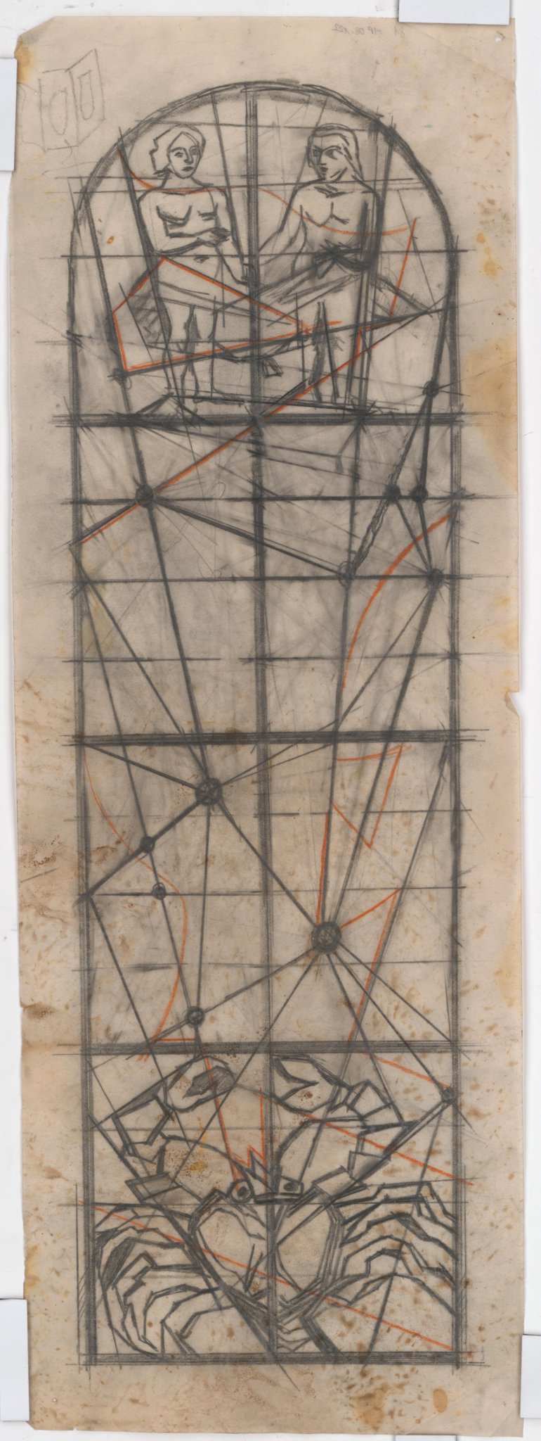 Projet pour des vitraux sur le thème de la "carte du ciel" pour l'église de Baden (non réalisés), avec deux signes du zodiaque à chaque extrémité. Le Cancer, en bas, les pinces tournées vers le haut, et au sommet les Gémeaux, représentés par un homme et une femme tournés l'un vers l'autre. La composition est traversée par le tracé de leurs constellations.