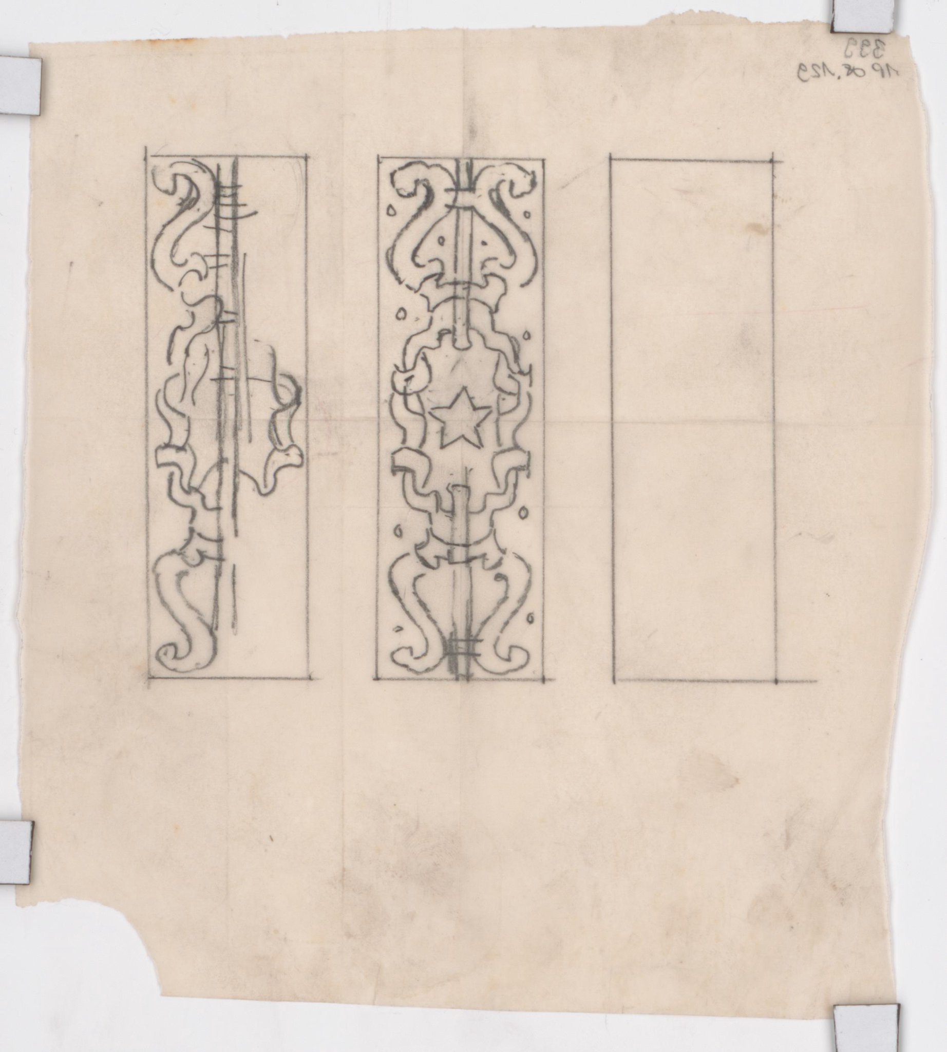 Esquisse pour des vitraux sur le thème de la "carte du ciel" : frises décoratives avec médaillons ornés d'une étoile.