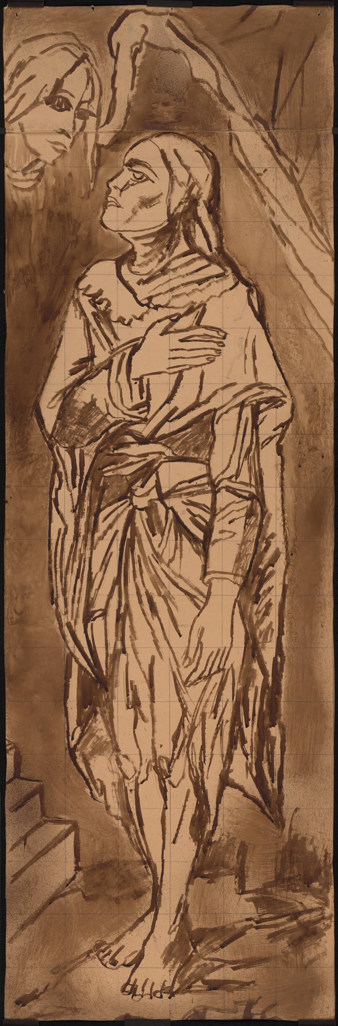 Ce travail préparatoire a été réalisé par Marcel Poncet dans le cadre d'une commande de vitraux pour la collégiale de Neuchâtel.