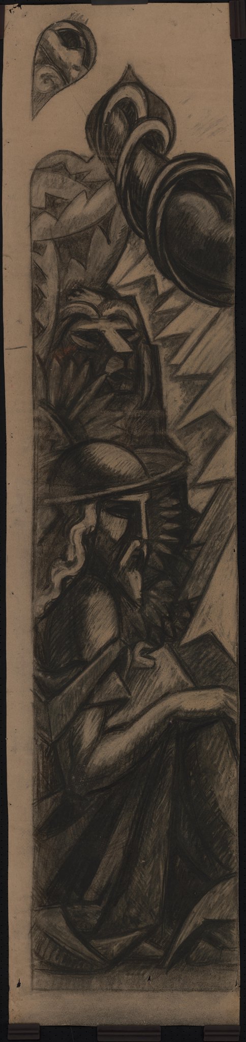 Ce carton en noir et blanc pour la première lancette du vitrail des quatre Evangélistes, correspond à une phase avancée du travail, sa composition étant déjà presque arrêtée, et le style s'apparentant au résultat du vitrail. Sur le vitrail, saint Marc a cependant la tête tournée de trois-quarts et non de profil. Il fait partie d'un ensemble de quatre cartons similaires (MP_02.130, MP_02.131, MP_02.132 et MP_02.133).