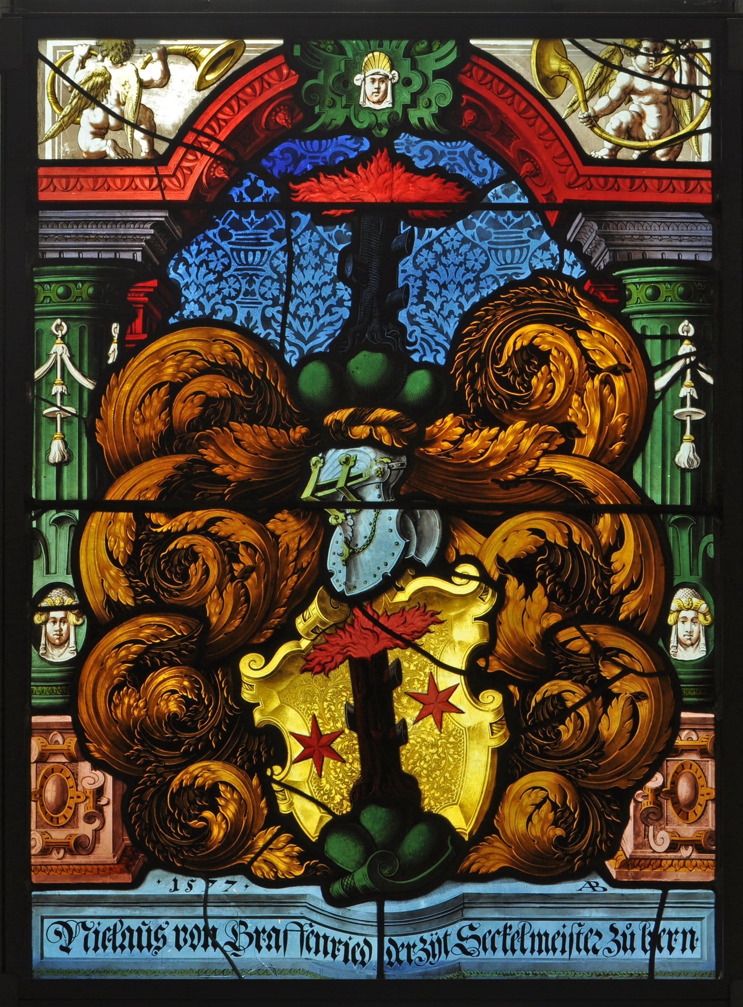 Hasler, R., Keller, S., & Bergmann, U. (2016). Wappenscheibe Niklaus von Graffenried. Dans Vitrosearch. Consulté le 24 décembre 2025 de https://staging.vitrosearch.ch/objects/2246290.