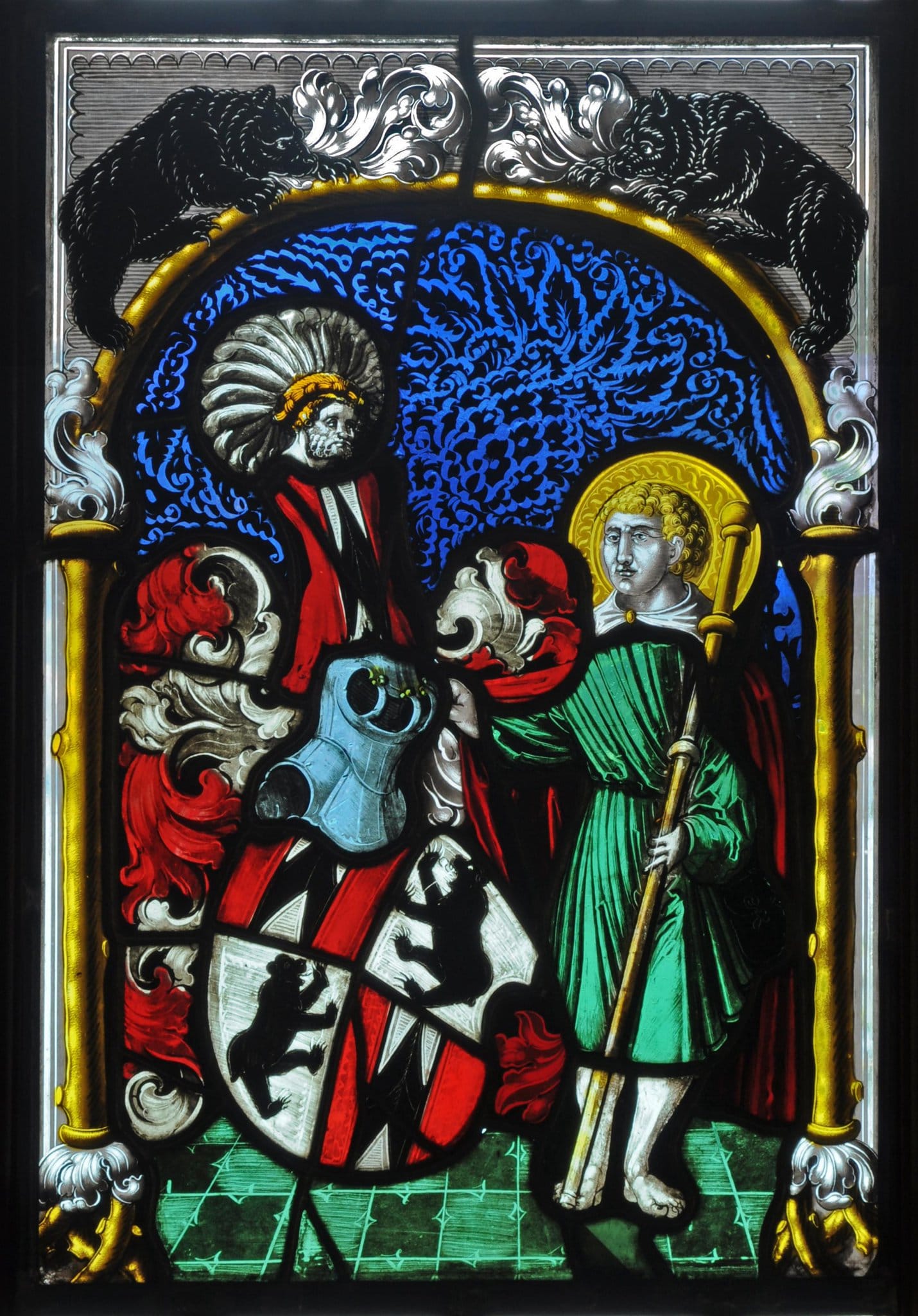 Figurenscheibe Ludwig von Erlach und Barbara Schmid mit hl. Beat (?)
