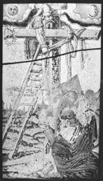 73D71 · la descente de croix : Jésus-Christ est enlevé de la croix, généralement par Nicodème et Joseph d'Arimathie, montés sur des échelles (les deux bras du Christ sont détachés de la croix)
