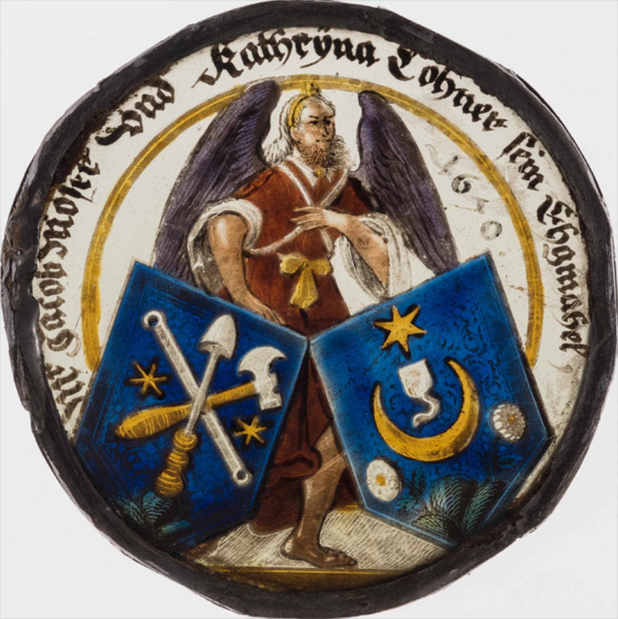 Bärtige Engel sind in der christlichen Kunst höchst selten dargestellt. Ein solcher erscheint bei der Hirtenverkündigung auf dem Isenheimer Altar von Matthias Grünewald um 1515 im Unterlindenmuseum Colmar (Schmidt/Schmid 1981, Bd. 2, S. 274; Marquard 2009, S. 149). Denkbar ist, dass auf der vorliegenden Scheibe eventuell eine Verschmelzung der biblischen, meist bärtig dargestellten Figur Jakobs mit dem Engel stattfand. Jakob, der mit dem Engel rang und schliesslich von diesem nach langem Kampf gesegnet wurde, war Namenspatron des Stifters.