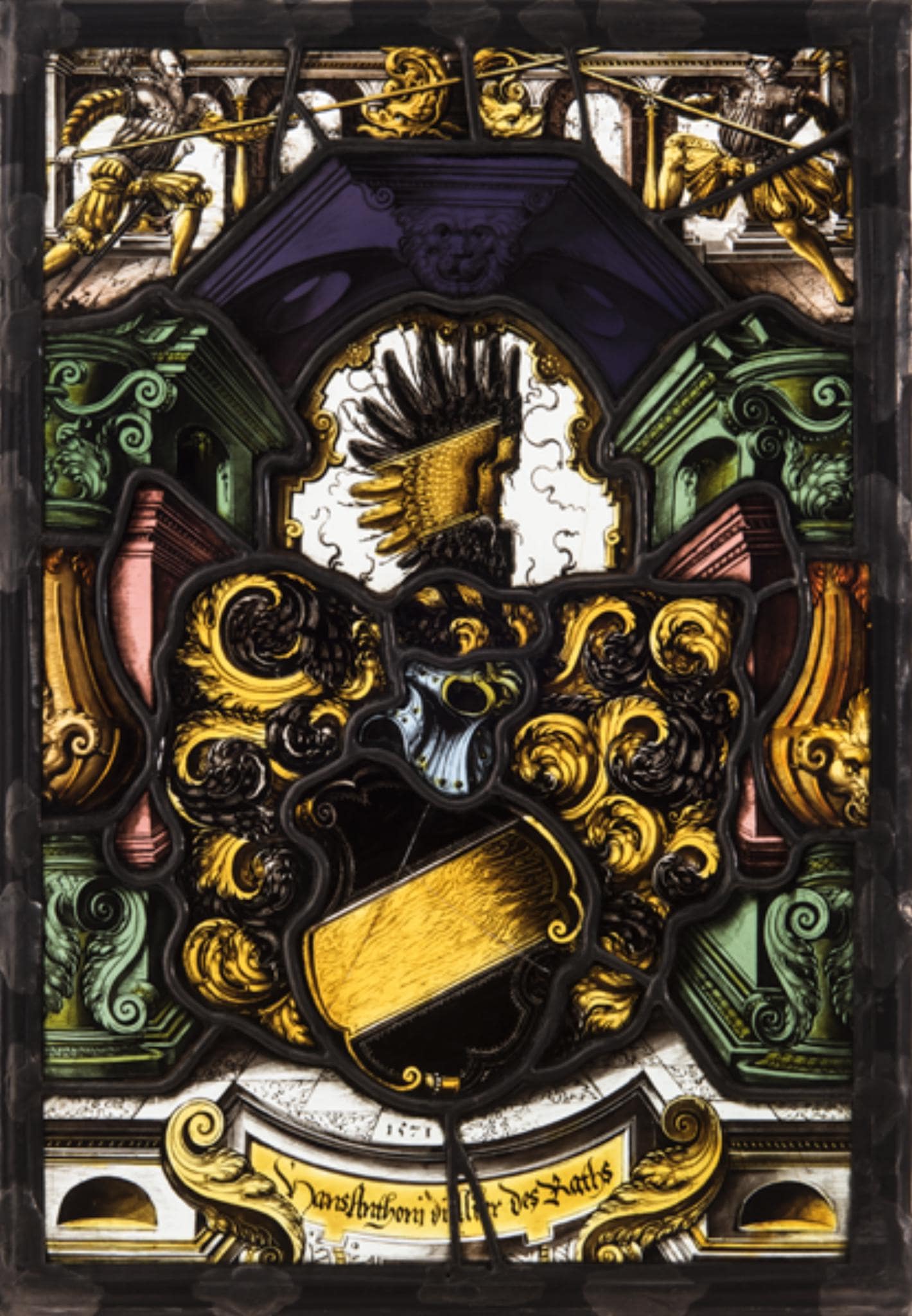 Die sehr ähnlich komponierten Scheiben Wolfgang Mays im Bernischen Historischen Museum (BHM Bern, Inv. 25144) und Johann Anton II. Tilliers wurden wohl ursprünglich an denselben unbekannten Ort gestiftet. Die stilistischen Parallelen dieser beiden Scheiben zu den Werken gleichzeitig arbeitender Glasmaler wie Abraham Bickhart und Hans Jakob Hübschi oder anderer damaliger Berner Meister sind nicht eng genug, um sie einer bestimmten Hand zuschreiben zu können.