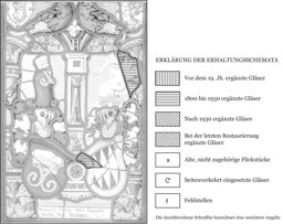 Je ein Stück im Wappen von Bonstetten und in dessen Helmzier neu ergänzt; Sprungbleie; die Verbleiung erneuert.