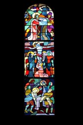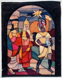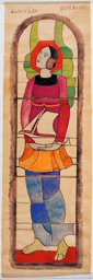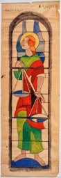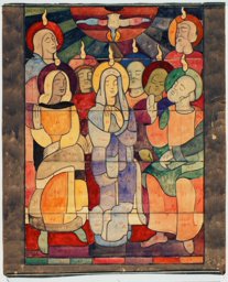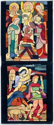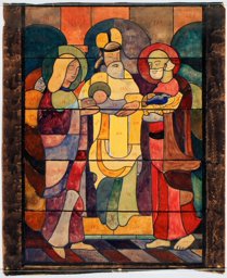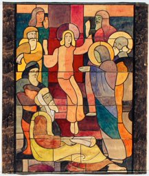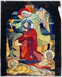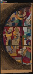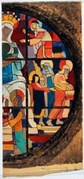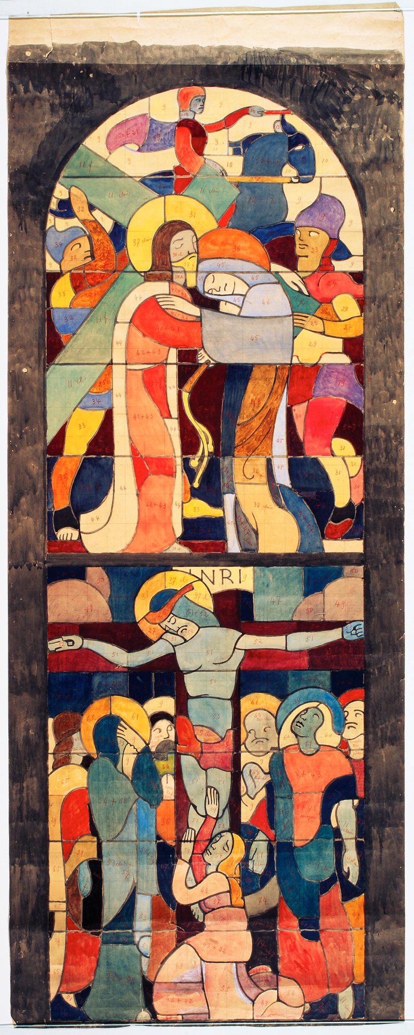 carton pour chapelle de la Vierge (Egl. Ste Thérèse ) / 2e à droite côté Epitre // Jésus portait sa croix [dessinée] rencontre sa Mère / Crucifixion / mise au Tombeau (au verso en haut à droite)