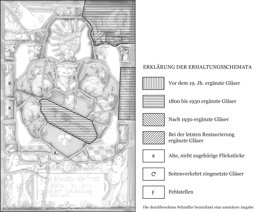 Das Vollwappen Hans Rudolf Lerbers steht vor farblosem Grund in einer dreiachsigen und verkürzten Architektur, die sich über dem violett geschachten Boden erhebt. Zusammen mit dem durch die Helmdecke verdeckten inneren Stützenpaar tragen zwei grüne Aussenpfeiler auf violetten Basen das Gebälk mit dem zentralen blauen Bogen. Die beiden oberen Eckfelder füllen Vasen mit Fruchtgebinden. Am Scheibenfuss halten zwei Putten die blau-gelbe Rollwerkkartusche mit der Stifterinschrift.
