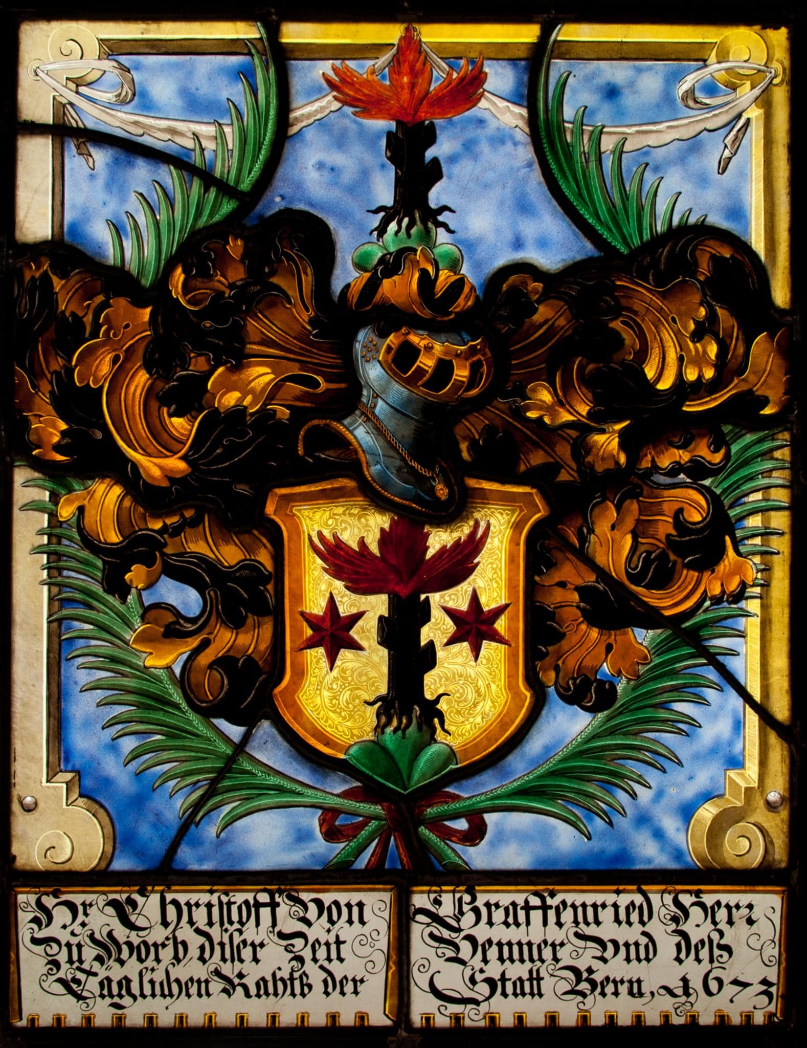 Christoph von Graffenried (1603–1687), der Sohn Abrahams (1580–1620), trat nach Studien in Lausanne, Genf, Dijon und Paris in die Leibgarde des Prinzen Friedrich Heinrich von Oranien ein. 1635 wurde er in Bern Mitglied des Grossen und 1651 des Kleinen Rats. 1642–1648 amtete er als Landvogt von Nidau. 1654 war er Bauherr und zwischen 1657–1685 viermal Venner zu Pfistern. Daneben durchlief er eine militärische Karriere, unter anderem 1655 als Kriegsrat, 1659 als Kommandant der Waadt sowie 1683 als Oberkommandant der deutschen Lande. Er war dreimal verheiratet: seit 1631 mit Anna von Mülinen, der Tochter Josuas und Witwe des Sulpitius Tscharner, seit 1648 mit Barbara Augsburger, der Tochter des Johann Ludwig und Witwe des Samuel Zehender, sowie seit 1659 mit Margaretha Tscharner, der Tochter Samuels und Witwe des Johann Georg von Werdt (HLS 5/2006, S. 588; HBLS 3/1926, S. 629).