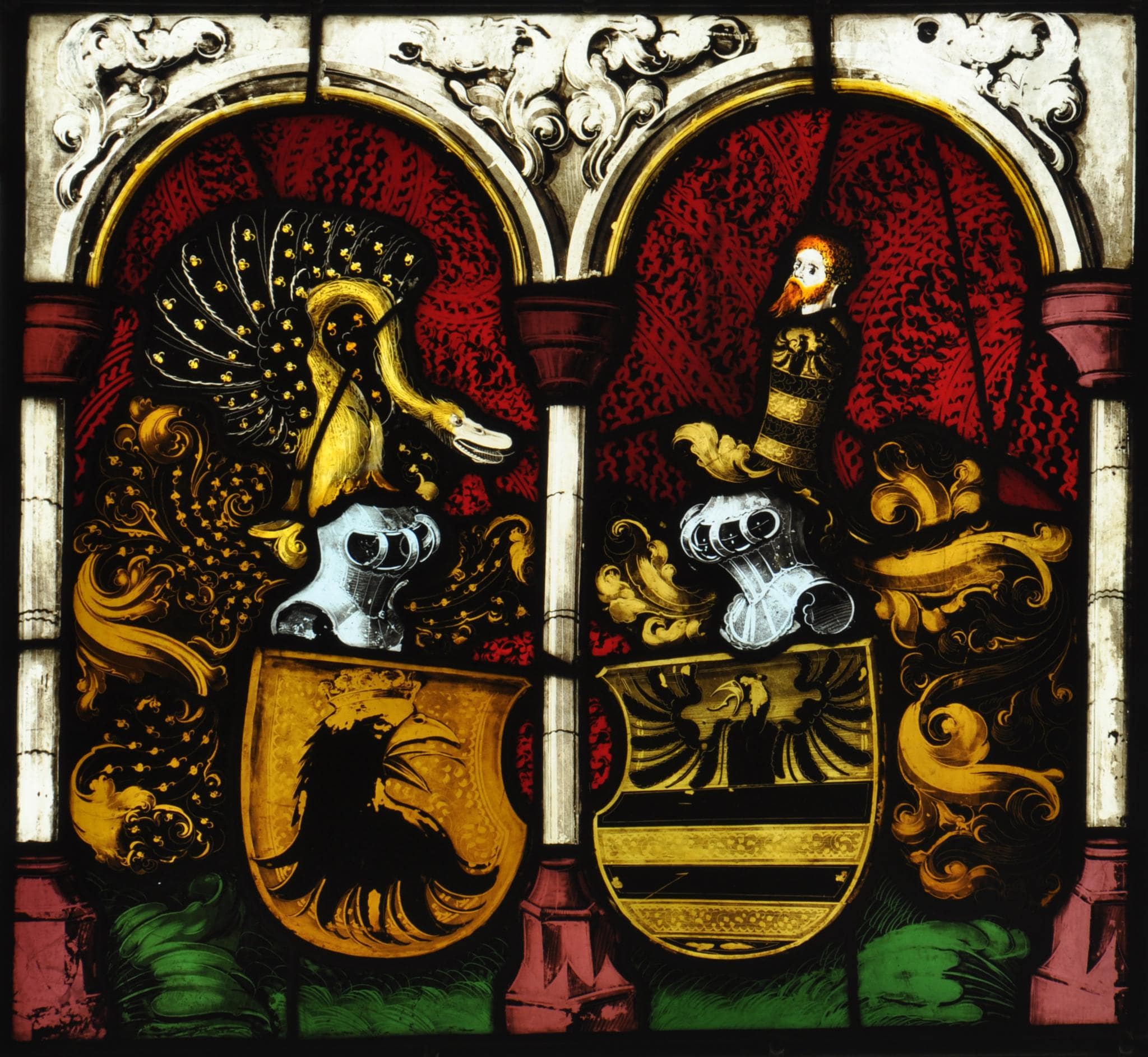 Farbloses und farbiges Glas; Bemalung mit Schwarzlot und Silbergelb.
