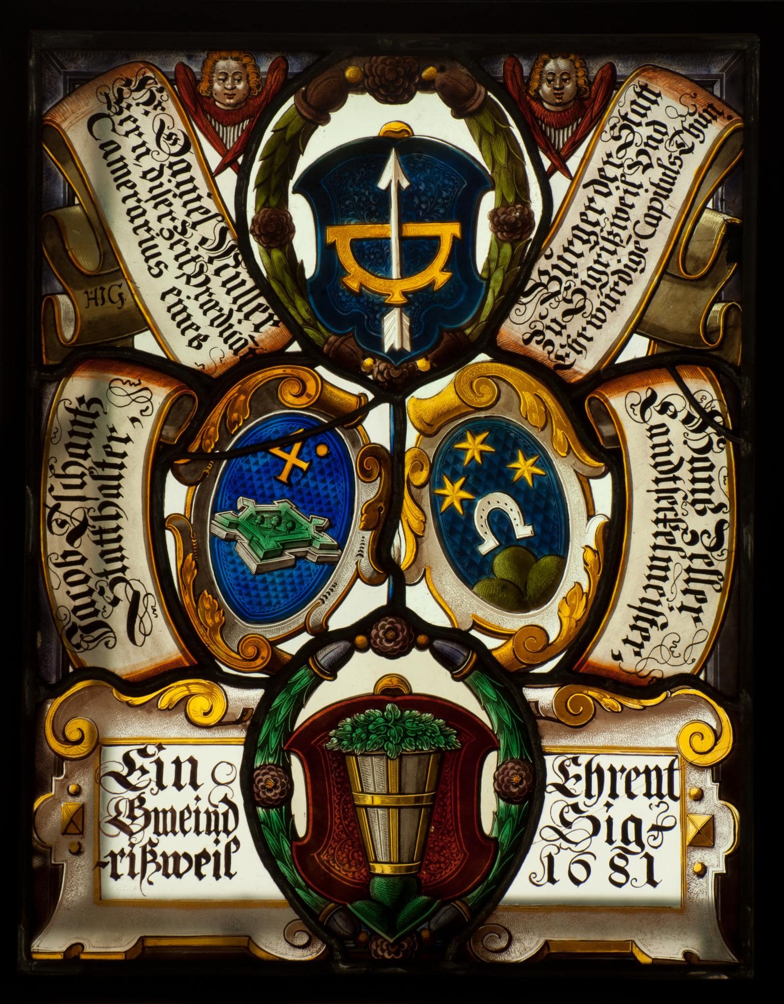 [Ein Ehrent / Gmeind Sig- / riβweil 1681] (die ergänzte Inschrift in eckigen Klammern).