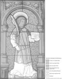 Farbloses und farbiges Glas, Bemalung mit Schwarzlot, SIlbergelb und Eisenrot.
