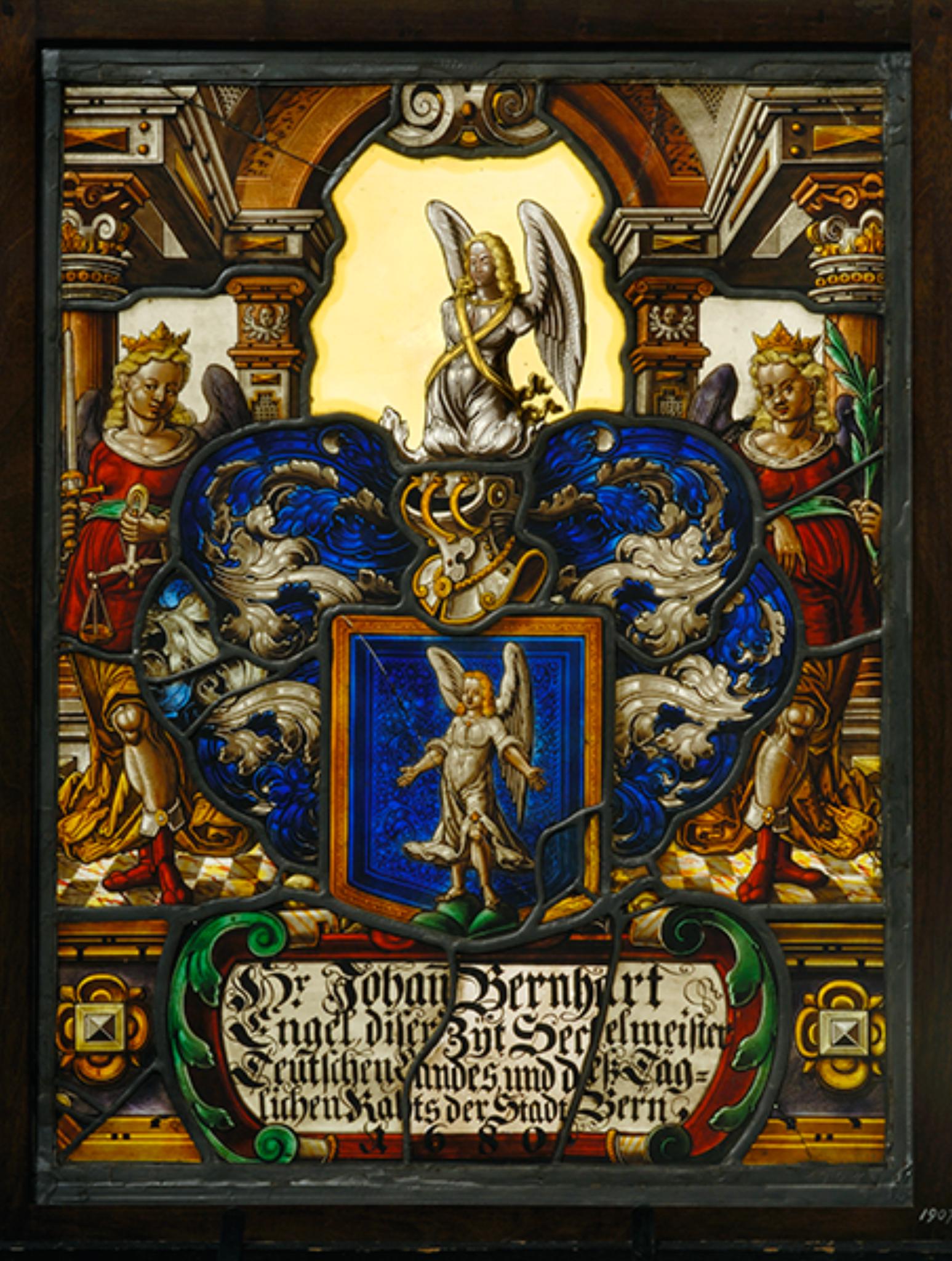 Hr. Johan [Bernha]rt / Engel, diser [Zÿt Sec]kelmeister / Teutschen L[andes vnd d]eβ Täg= / lichen Rah[ts der Stadt] Bern. / 1[680].