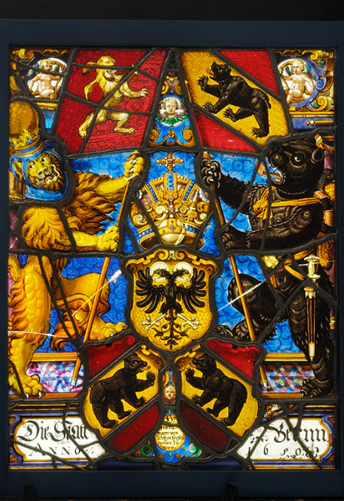 Banner und Wappen von Bern und den Zähringern; Reichsschild