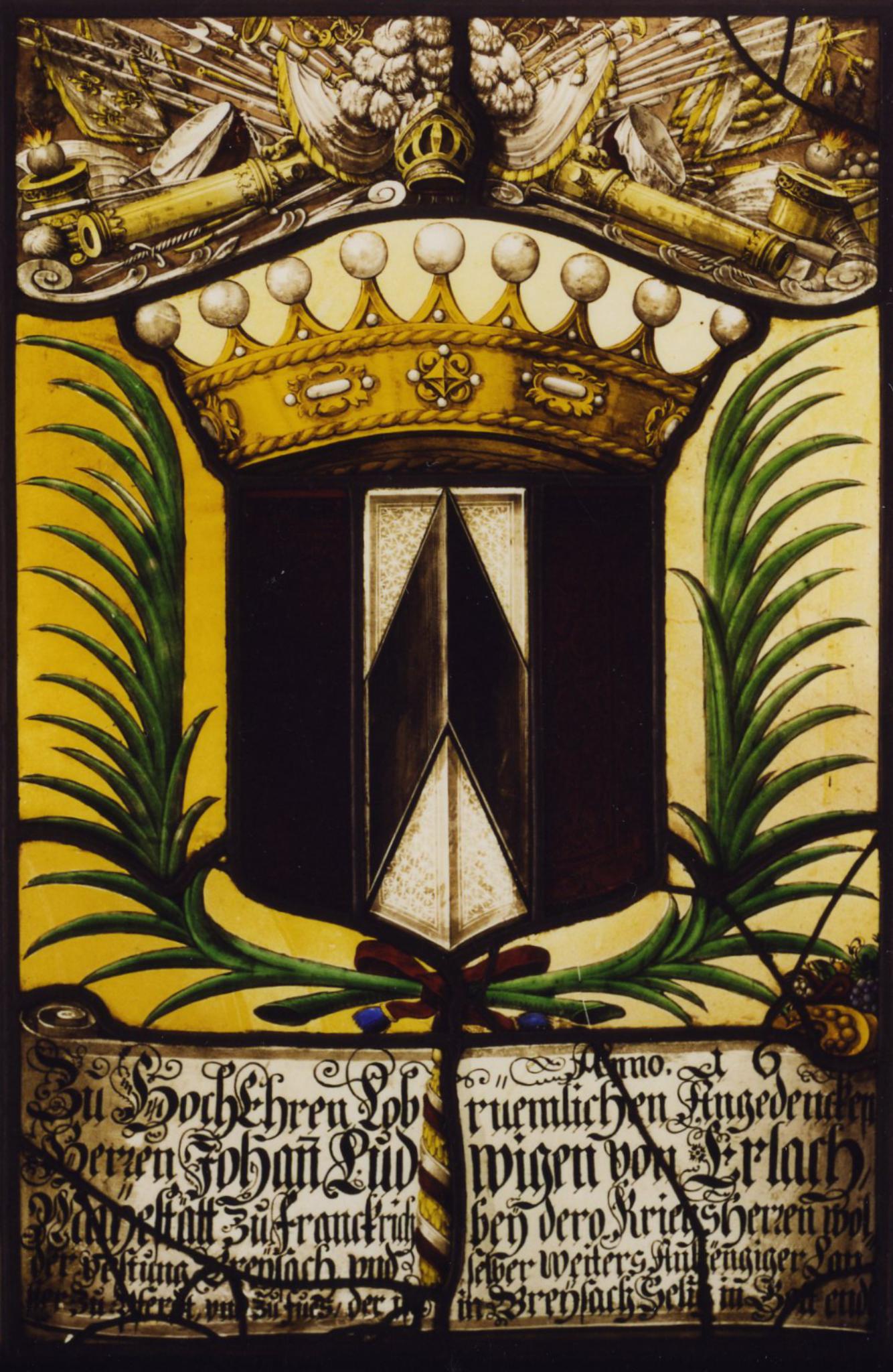 Gedenkscheibe Johann Ludwig von Erlach (linkes Stück der Doppelscheibe)
